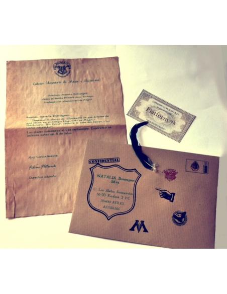 Pack BASICO MODELO 2: Carta de Hogwarts Personalizada + Sobre Personalizado + Billete de tren a Hogwarts